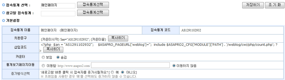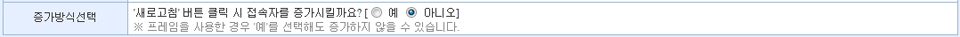| (6) 증가방식 선택에서 새로고침 시마다 접속자수를 증가시킬 것인지, 새로고침을 하여도 접속자수를 증가시키지 않을 것인지를 설정할 수 있습니다. |