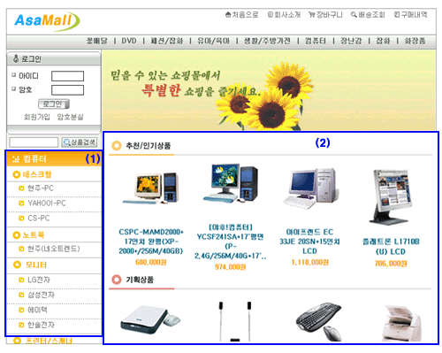 • (3) 분류별 메뉴 : 쇼핑몰의 대분류가 옵니다.